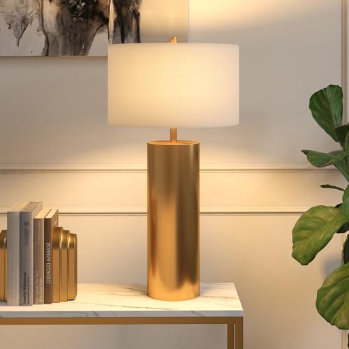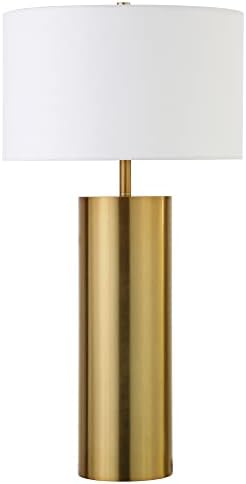 Equipped with a clean, white fabric drum shade, this lamp emits a soft, diffused light. This feature creates a warm, inviting atmosphere, perfect for cozy reading corners or as an elegant addition to your bedside table.